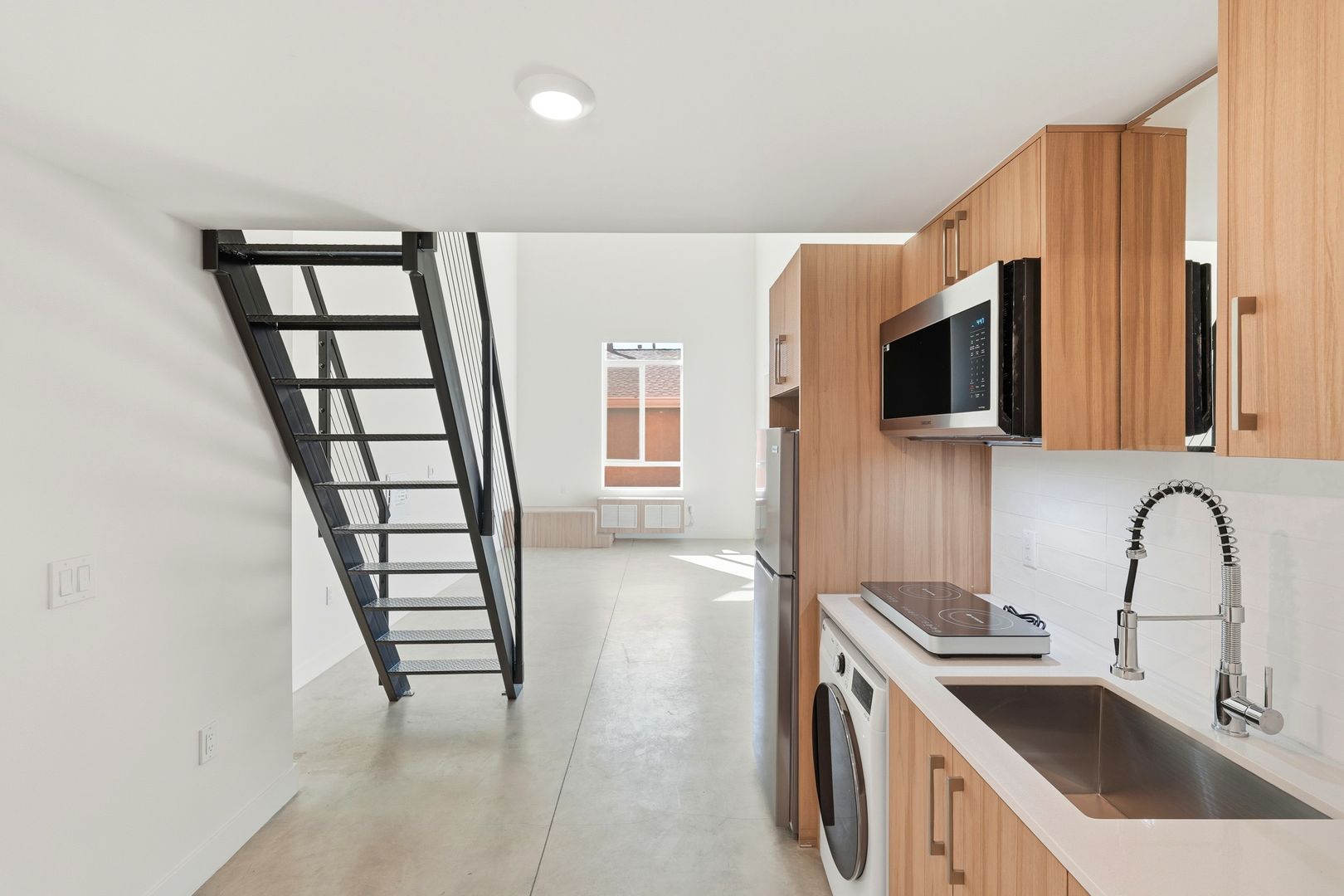Beautiful studio with Loft and Balcony in LA's most vibrant new building, Coral! Nestled on a residential street but still only steps from Echo Park Lake and Sunset Boulevard with many restaurants including Taix, Larchmont Bungalow Cafe, Breakfast Republic, and Chipotle. Target, Vons, Sprouts, Starbucks, McDonalds, Walgreens, and many more are within a half mile. Enjoy your private balcony in this modern studio with blonde cabinetry, polished concrete floors, air conditioning, stainless-steel refrigerator, double burner induction cooktop, full bathroom with shower, and washer/dryer in-unit. Access to full kitchen. Coral has an on-site fitness center and a landscaped community patio with BBQ grills. Come check out Coral today!